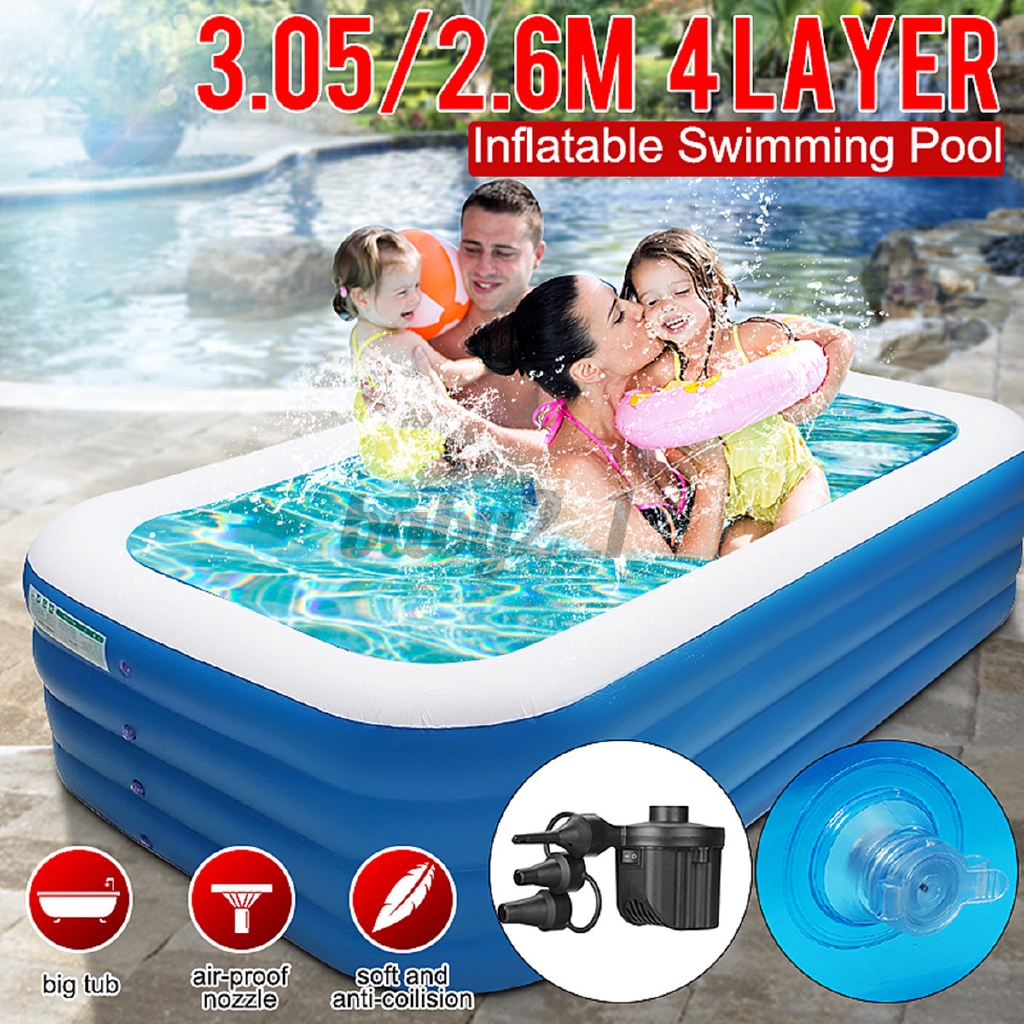 4 Layers Large 305 260cm Inflatable Portable Swimming Pool Adults Kids Water Pool Bathing Tub Outdoor Indoor Lounge Water Play Fun Backyard Shopee Indonesia