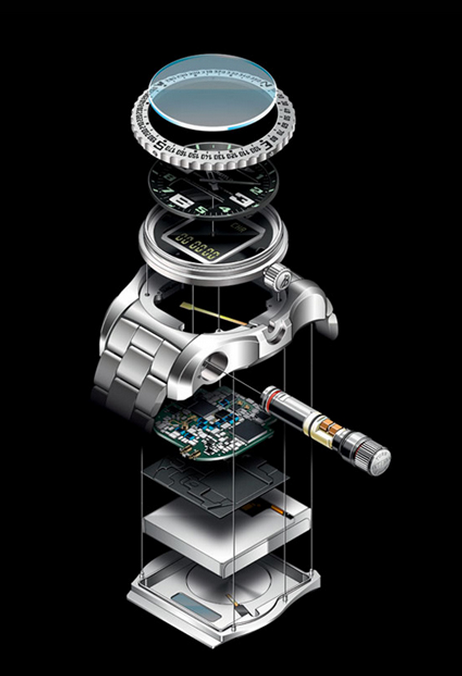The worlds first wristwatch with integrated personal locator beacon the Emergency is equipped with a transmitter complying with the Cospas-Sarsat specifications. The beacon of the Emergency was designed to simplify handling as much as possible.