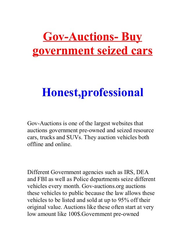 The US Department of Justice oversees the. Every month across the United States thousands of vehicles are seized by different Government agencies IRS DEA FBI and Police departments and auctioned off to the public at incredible deals. The program serves to identify stolen property and return it to its owners and to compensate victims with the proceeds from sales.