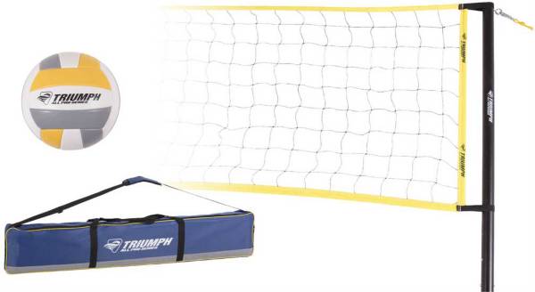 Description Test your skills around the net with the Triumph VolleyballBadminton Combo Set sure to provide hours of fun at picnics camping or any outdoor event. Serve up some family fun with the Triumph Volleyball Set. For an inexpensive portable volleyball set the Goplus Portable Training Net is a nice choice.